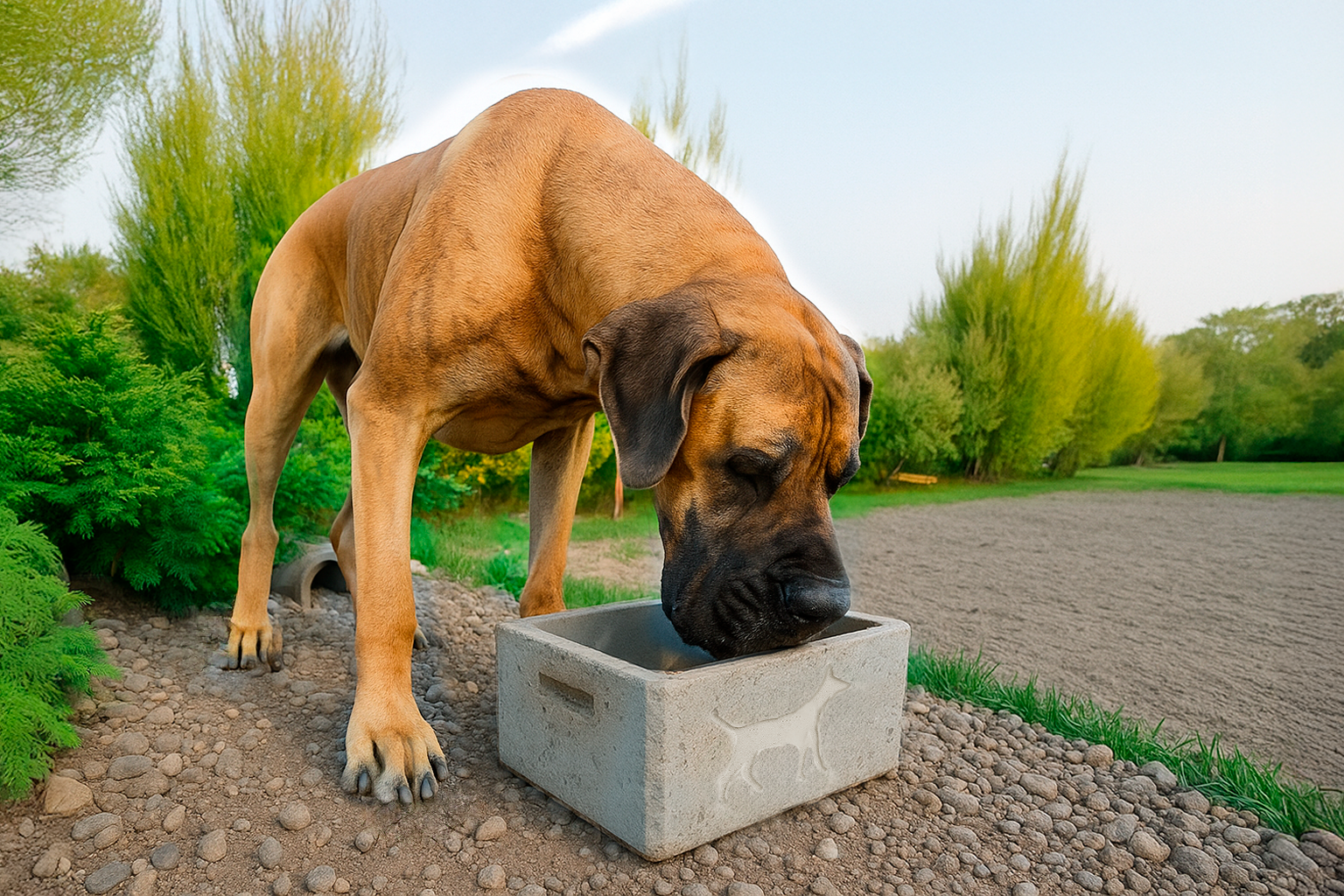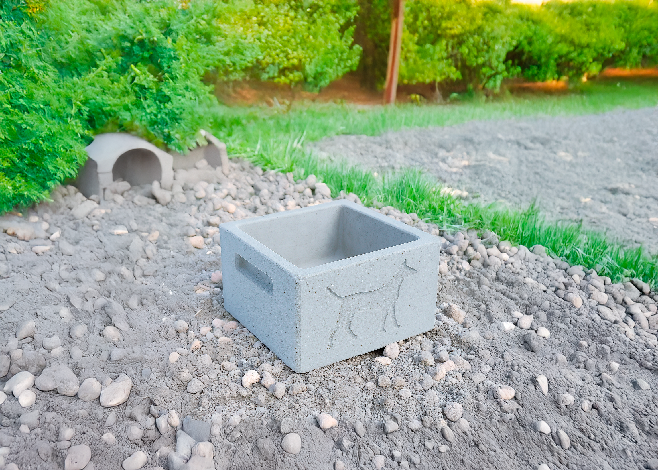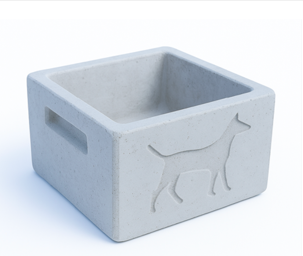 Un comedero compacto y fácil de transportar, ideal para perros, gatos, conejos y otras mascotas. Su diseño en hormigón evita vuelcos y facilita la limpieza diaria.